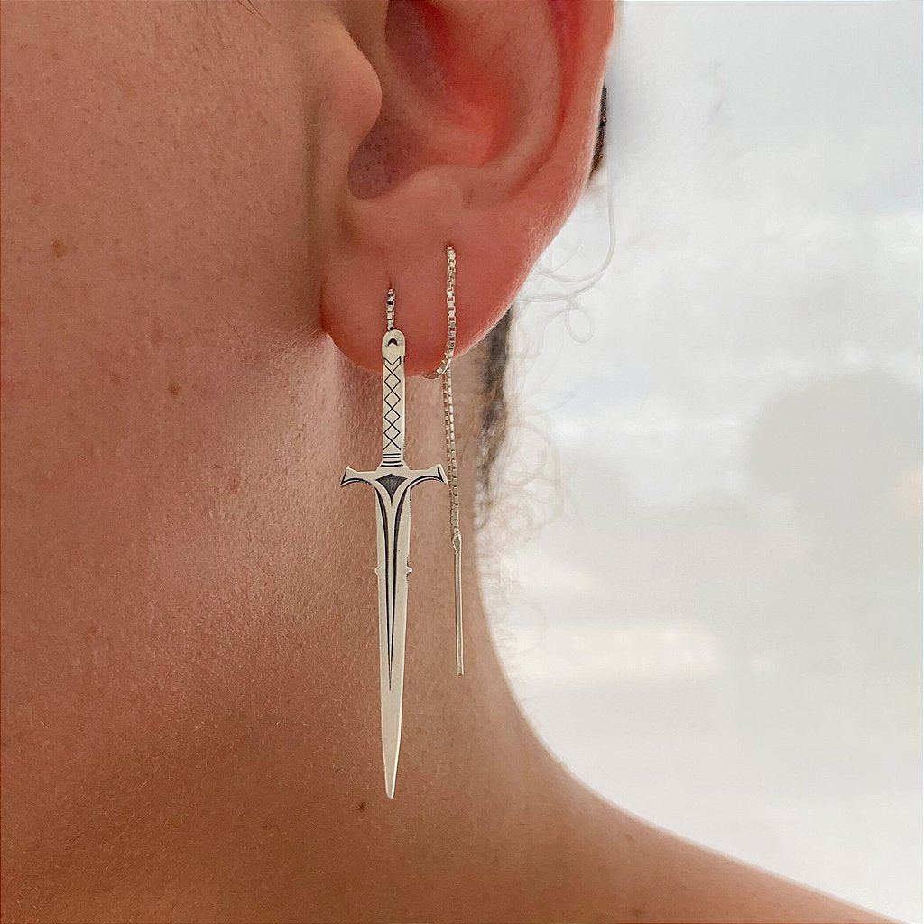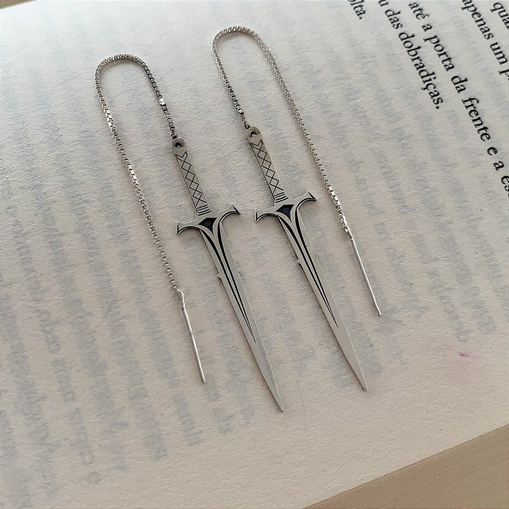 Brinco inspirado na espada Ceifadora do Vento, inspirado na poderosa Manon Bico Negro. Esta peça em prata 925 é um tributo à força e à determinação da icônica personagem.