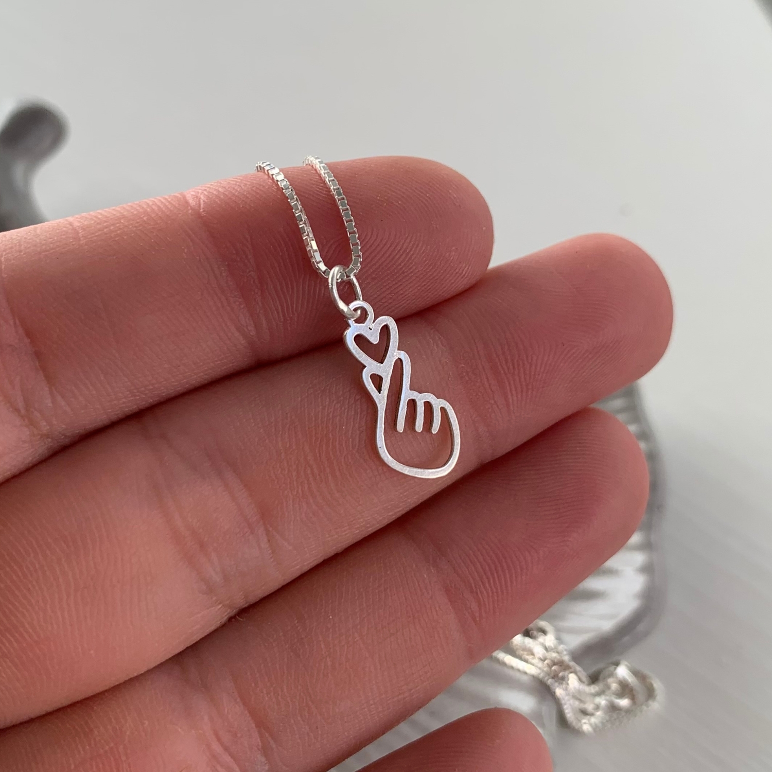 Descubra a beleza atemporal do Colar com Pingente "Saranghae", uma peça que combina delicadeza e um significado profundo. Este colar é uma verdadeira homenagem ao gesto coreano de amor "Saranghae", capturando a essência do afeto de maneira única. O pingente apresenta um design com linhas suavemente curvadas, criando uma silhueta elegante que se destaca em qualquer ocasião.