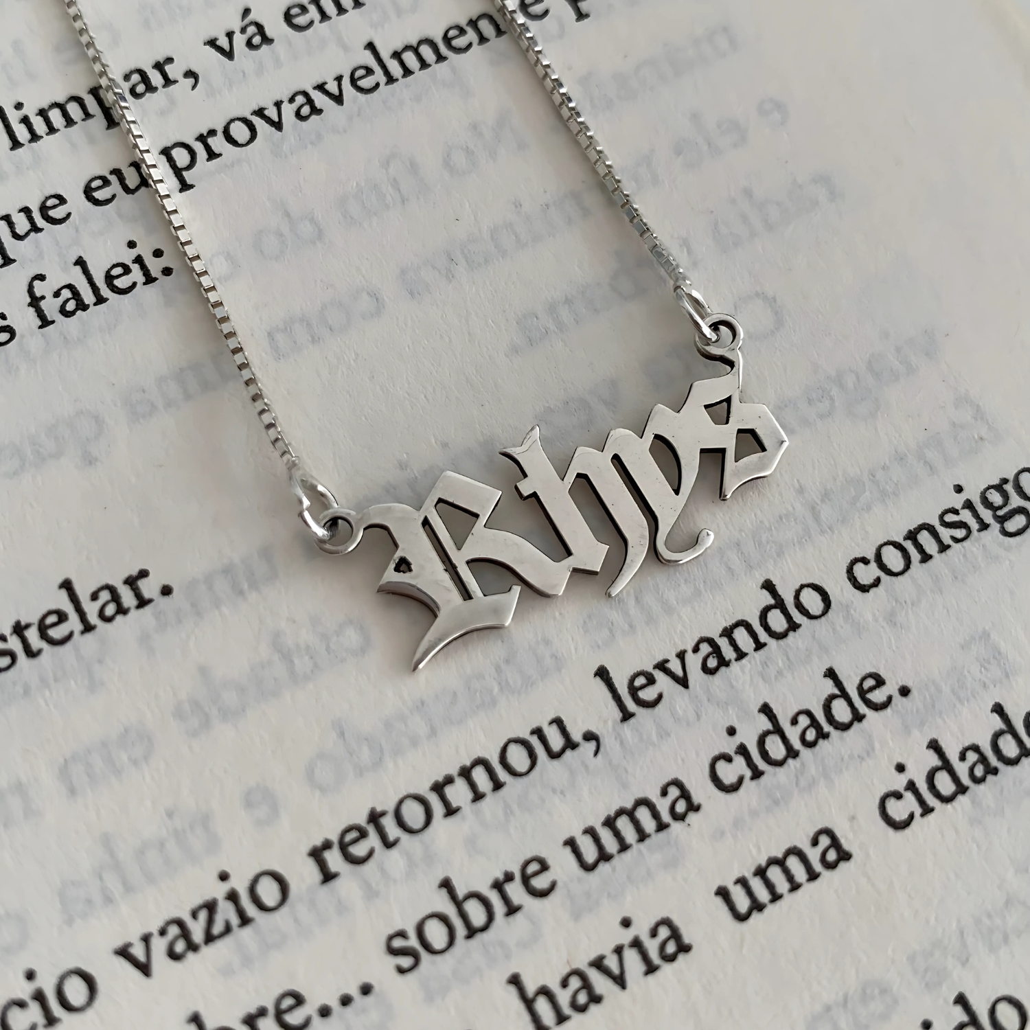 Colar Illyria , personalizado com o nome Rhys , o Grão-Senhor da Corte Noturna. Feito em prata 925, este colar celebra a força, o elegante e o poder de Rhysand, trazendo uma conexão íntima com o personagem favorito de muitos fãs da saga Corte de Espinhos e Rosas .
